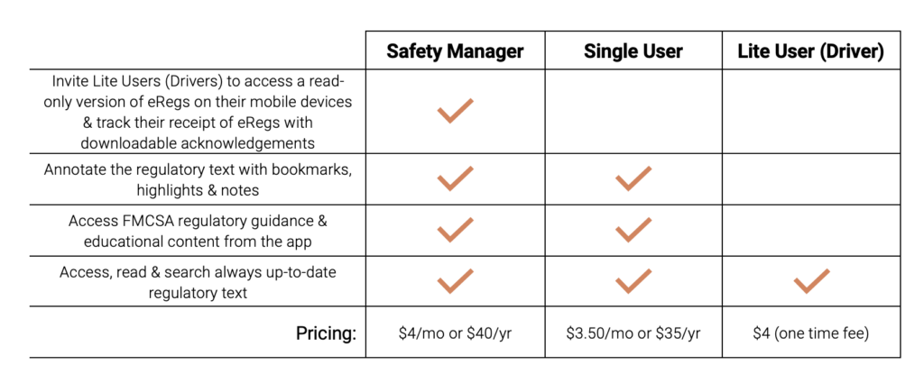 Simple, subscription-based pricing for full access to eRegs and all of its functionality!